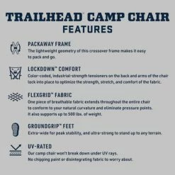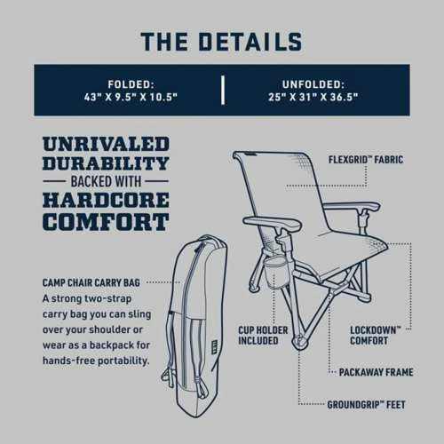 The YETI Trailhead Camp Chair is the perfect place to rest after a tough day on the trails. The YETI Trailhead Camp Chair features Flexgrid™ fabric that conforms to your natural shape and eliminates pressure points for comfort. Groundgrip™ feet provide support and stability on a variety of terrain, while the included cup holder provides a handy place to keep your YETI tumbler. Plus, the YETI Trailhead Camp Chair comes with a two-strap carry bag that can be worn over the shoulder or backpack-style for convenient on-the-go carry. You’ve earned a break—make the most of it with the YETI Trailhead Camp Chair.