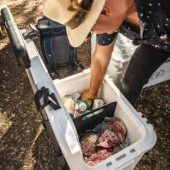 The Roadie 60 Wheeled Cooler from YETI is their largest mobile hard cooler. It has enough room for over 50 cans and the telescoping Periscope Handle and NeverFlat Wheels make for easy trekking through the backcountry, sand, or grass (even when loaded full). Built with the same durability and thermal performance as the YETI Tundra Hard Cooler, this wheeled cooler is virtually indestructible and can hold ice for days thanks to its Permafrost Insulation.